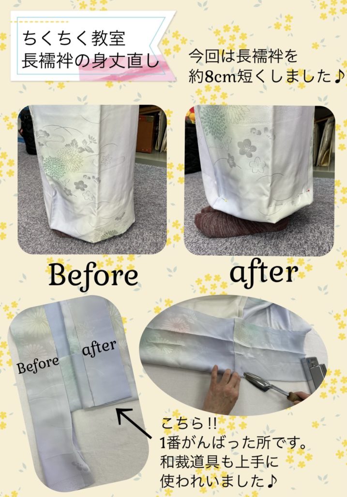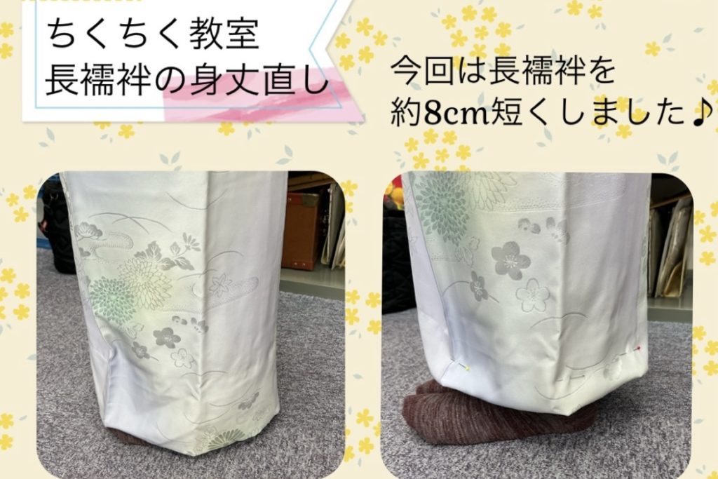 お客様は、ずっと身丈が長くて着れなくて箪笥の中にしまっていたから、これで着れるようになってうれしいと、おっしゃっていました。