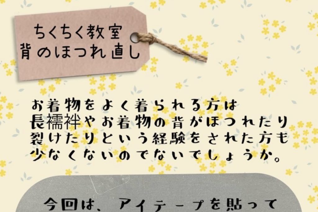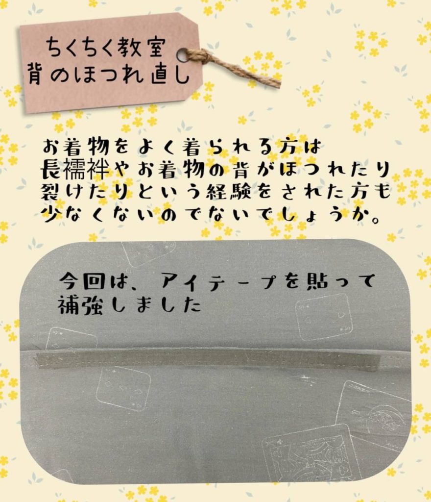 今回のちくちく教室では、長襦袢のほつれ直し