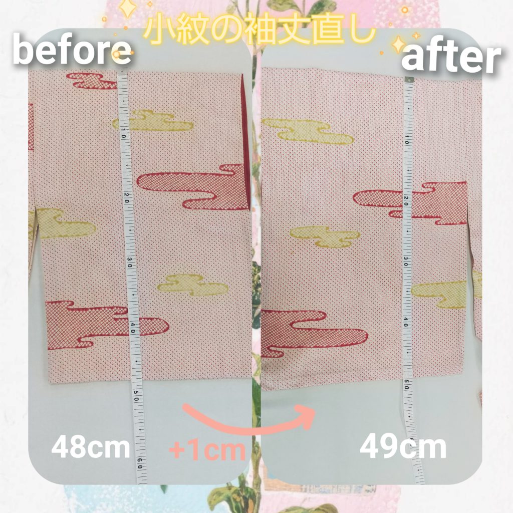 着物の袖丈は身長に合わせて丈の長さが変わります。