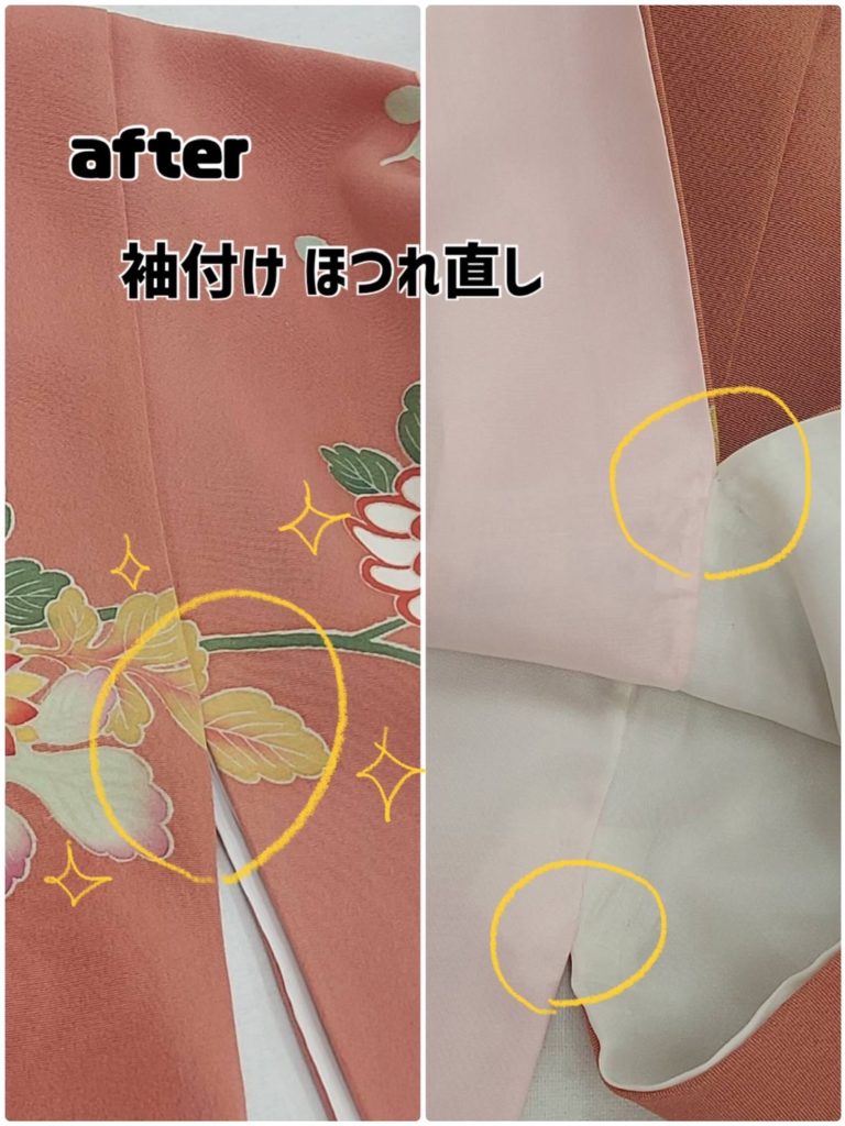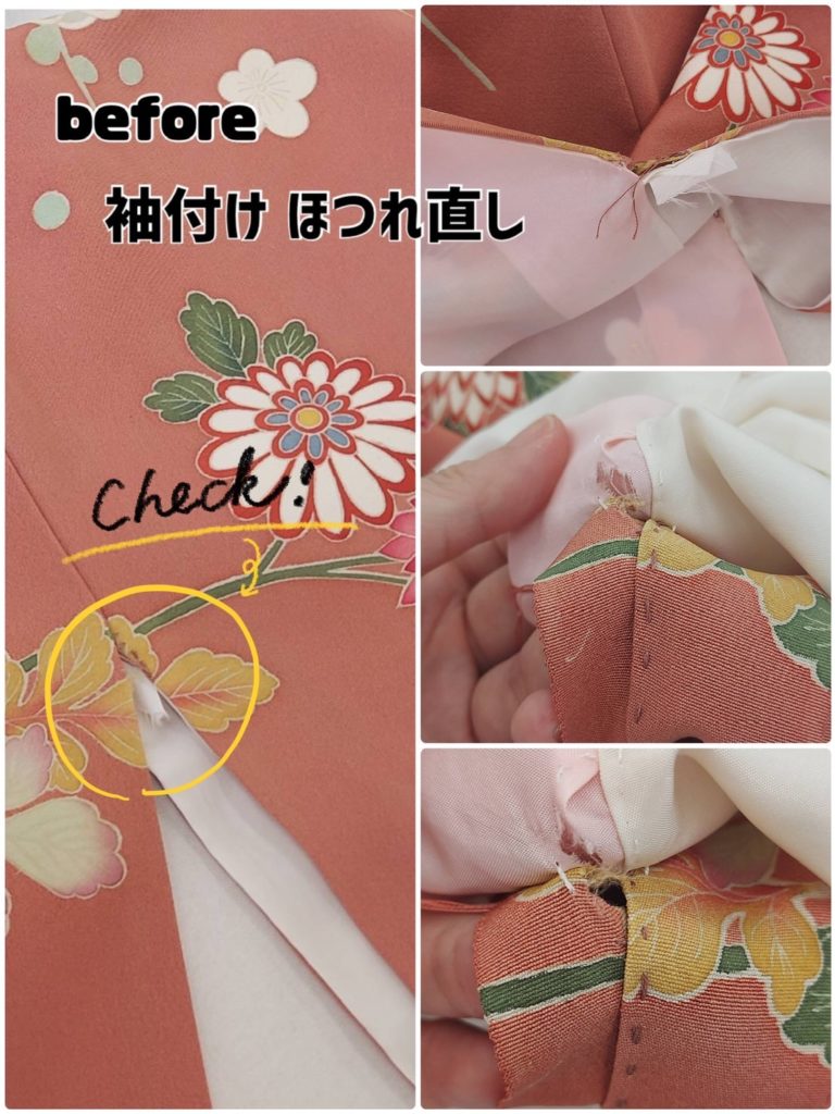 振袖の袖付が破れてほつれていたためお直しさせていただきました!