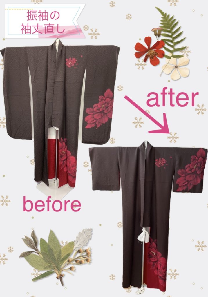 訪問着としてお袖丈を短くするけど、後日 妹さんが着る時の為に戻せる様にしたい。