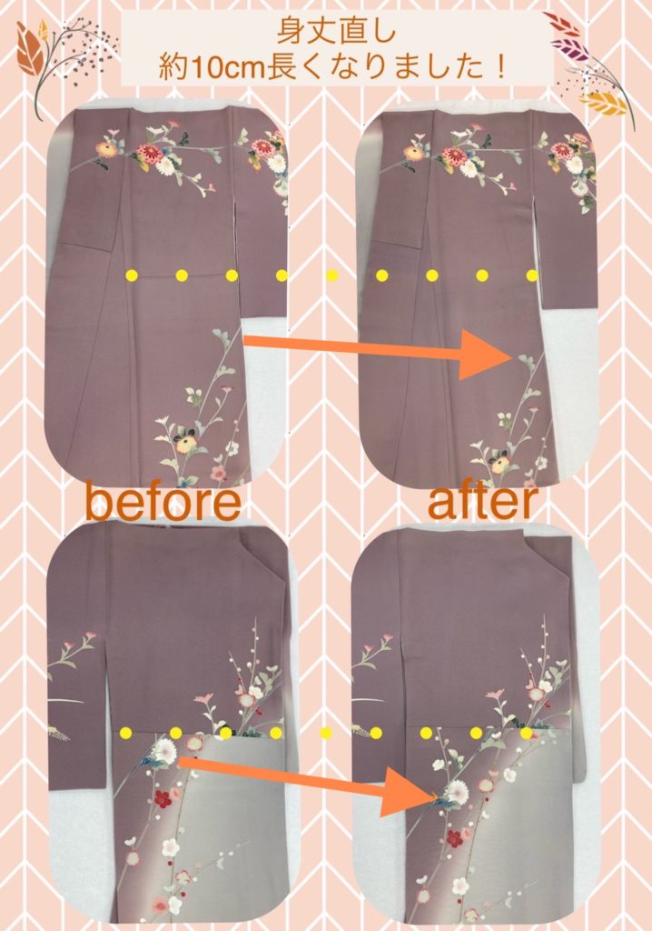 今回お預かりしたお着物は10cm長くすることが出来ました。