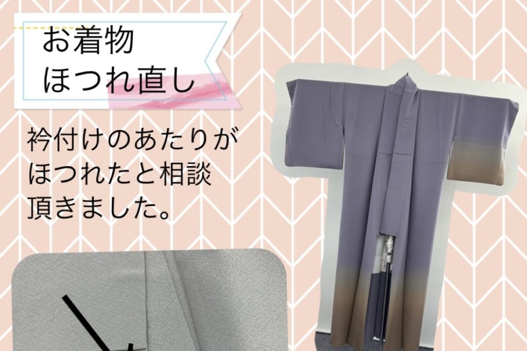 今回は、衿付けのあたりがほつれたと相談頂きました。