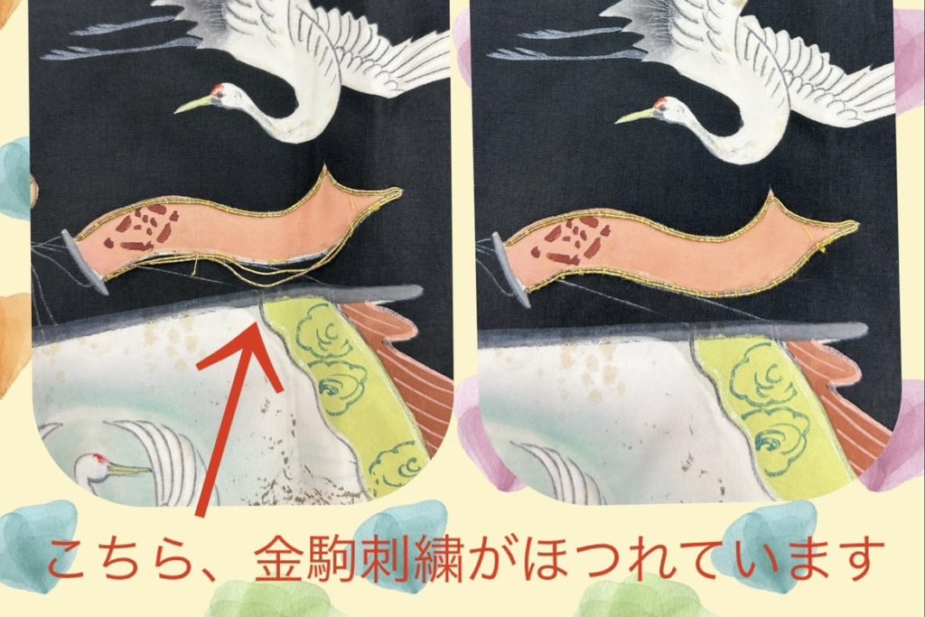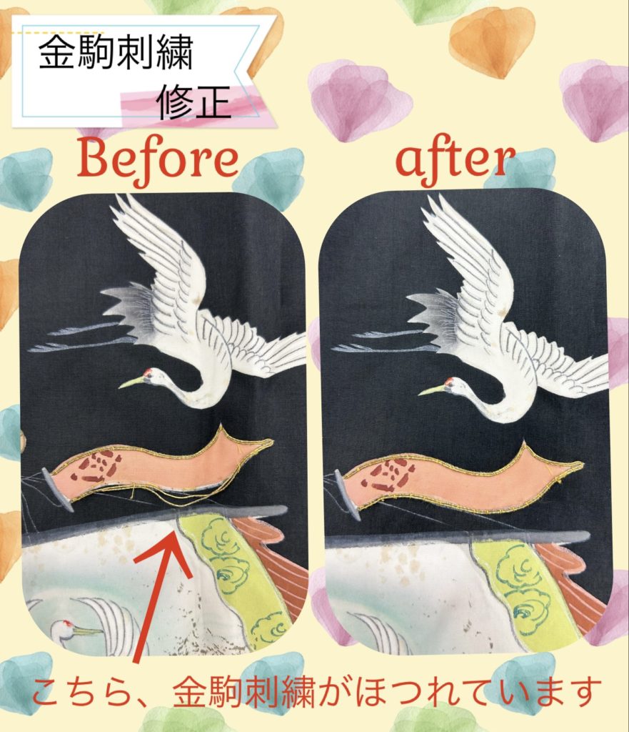 今回は、祝着の金駒刺繍の修正を