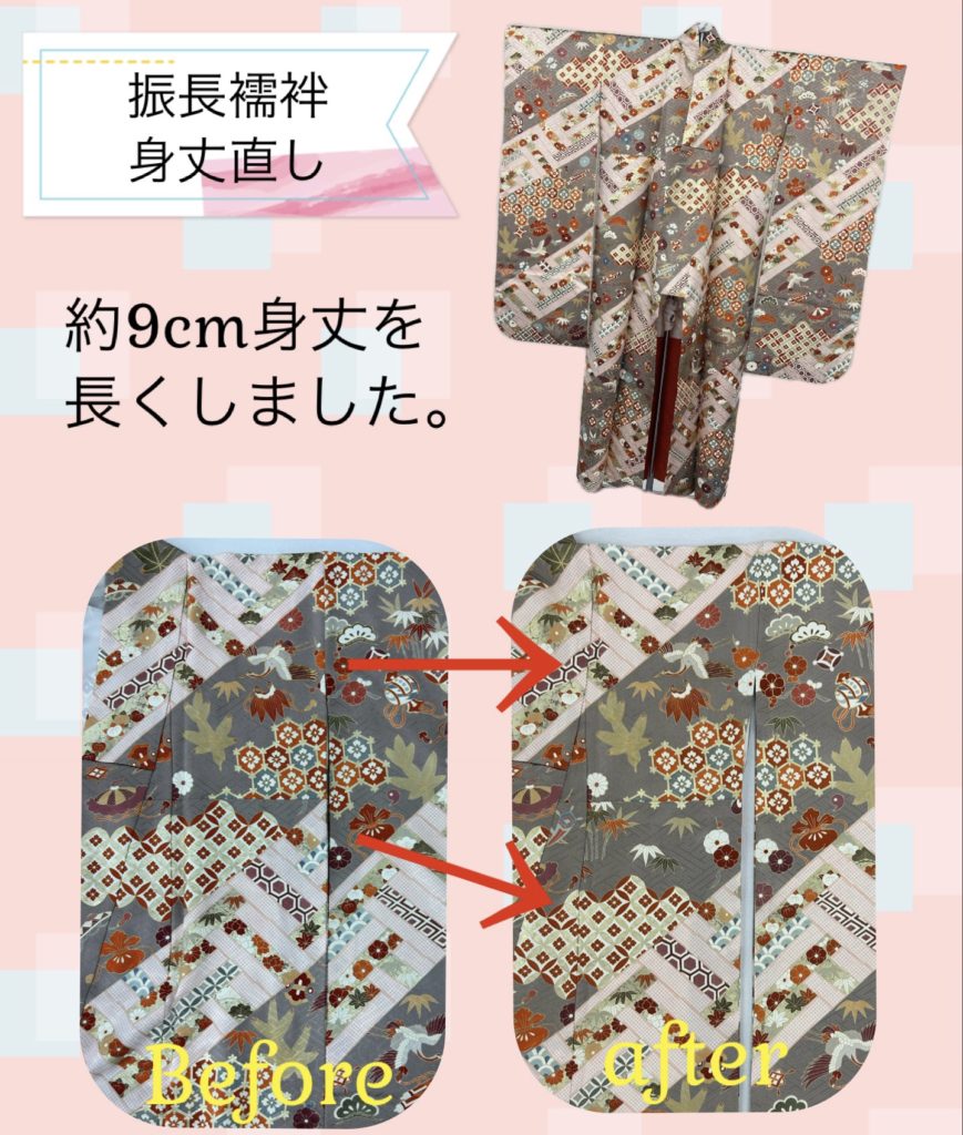 今回お預かりしたお着物は約9cm長くすることが出来ました。