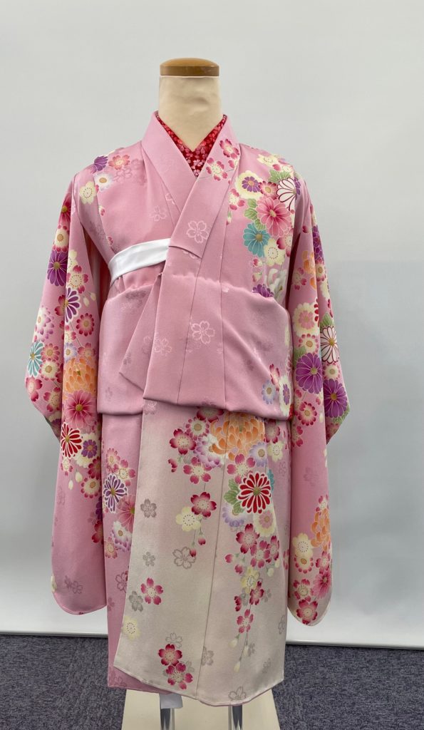 仮絵羽の振袖をといて、小さくお仕立て、揚げをして、長襦袢のお袖をつけました。