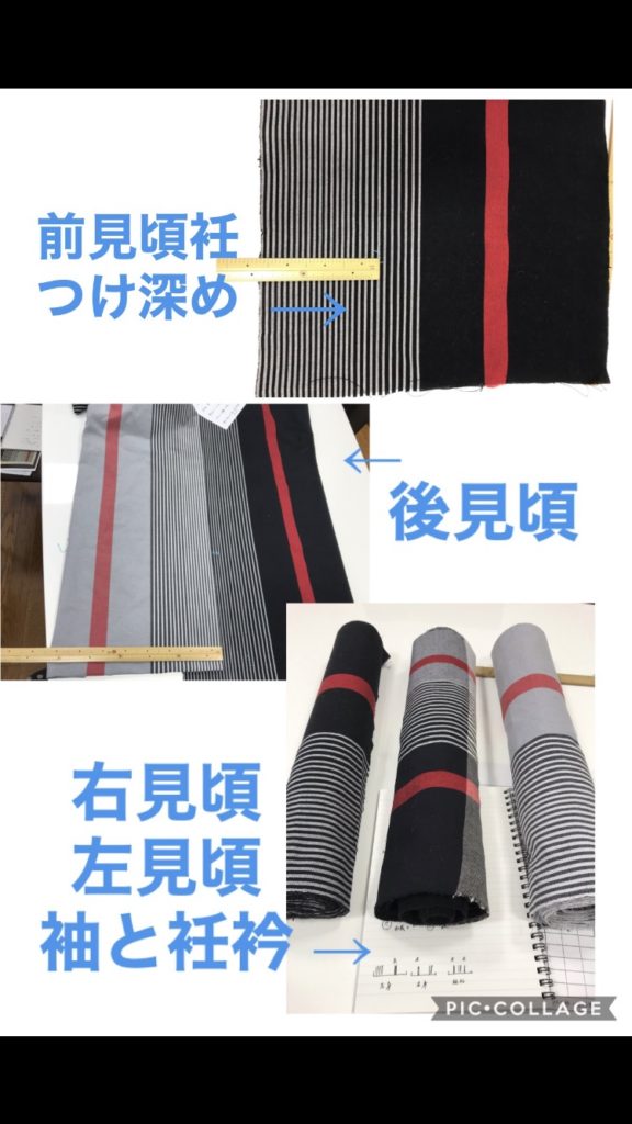 久富さんには直接勝矢和裁に反物をお持ちいただき、柄出しなどの相談をしました。